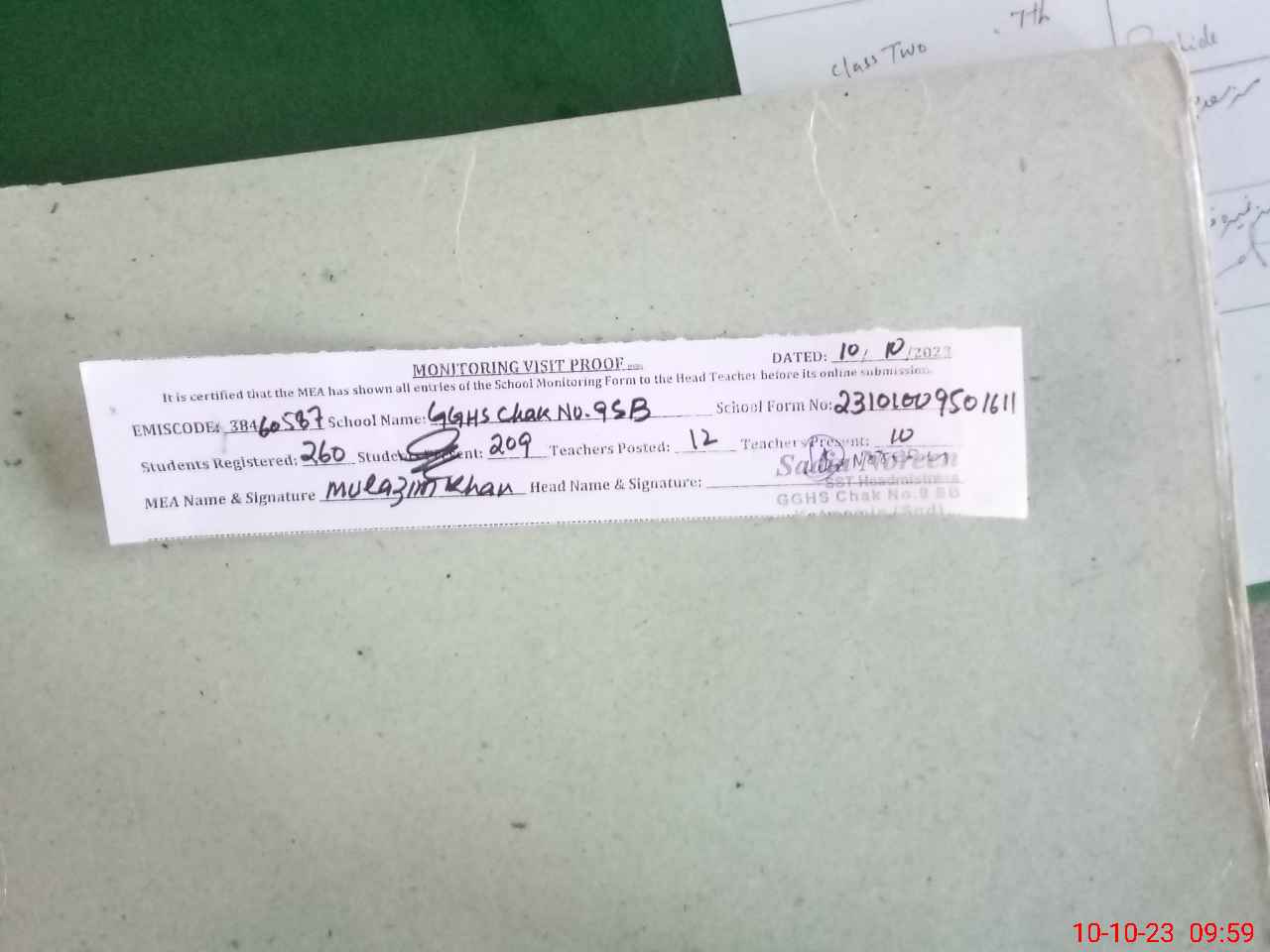 | EMIS Code: 38460587 | Name of School: GGHS CHAK NO.9 SB | |||