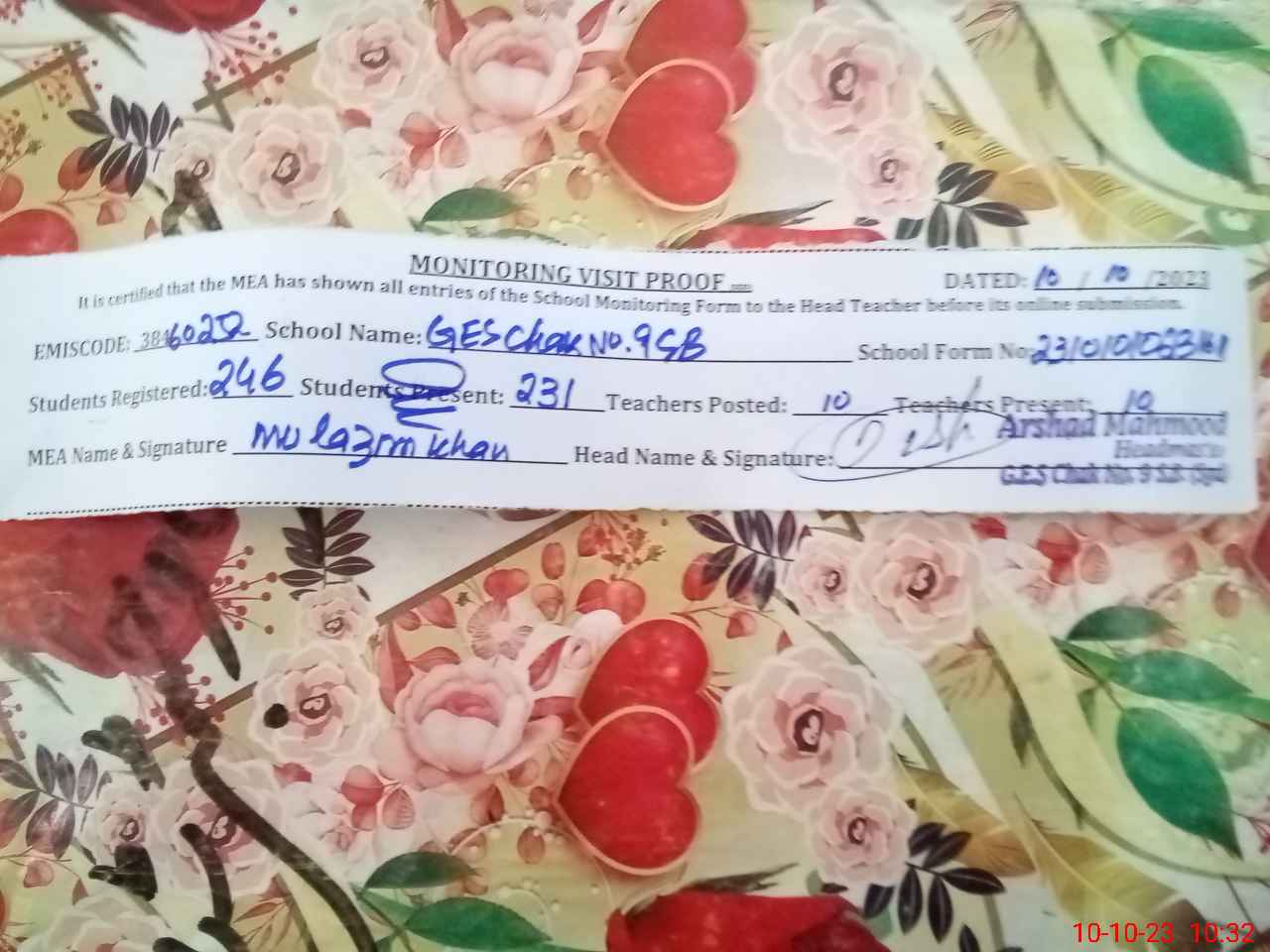 | EMIS Code: 38460252 | Name of School: GES CHAK NO.9 SB | |||
