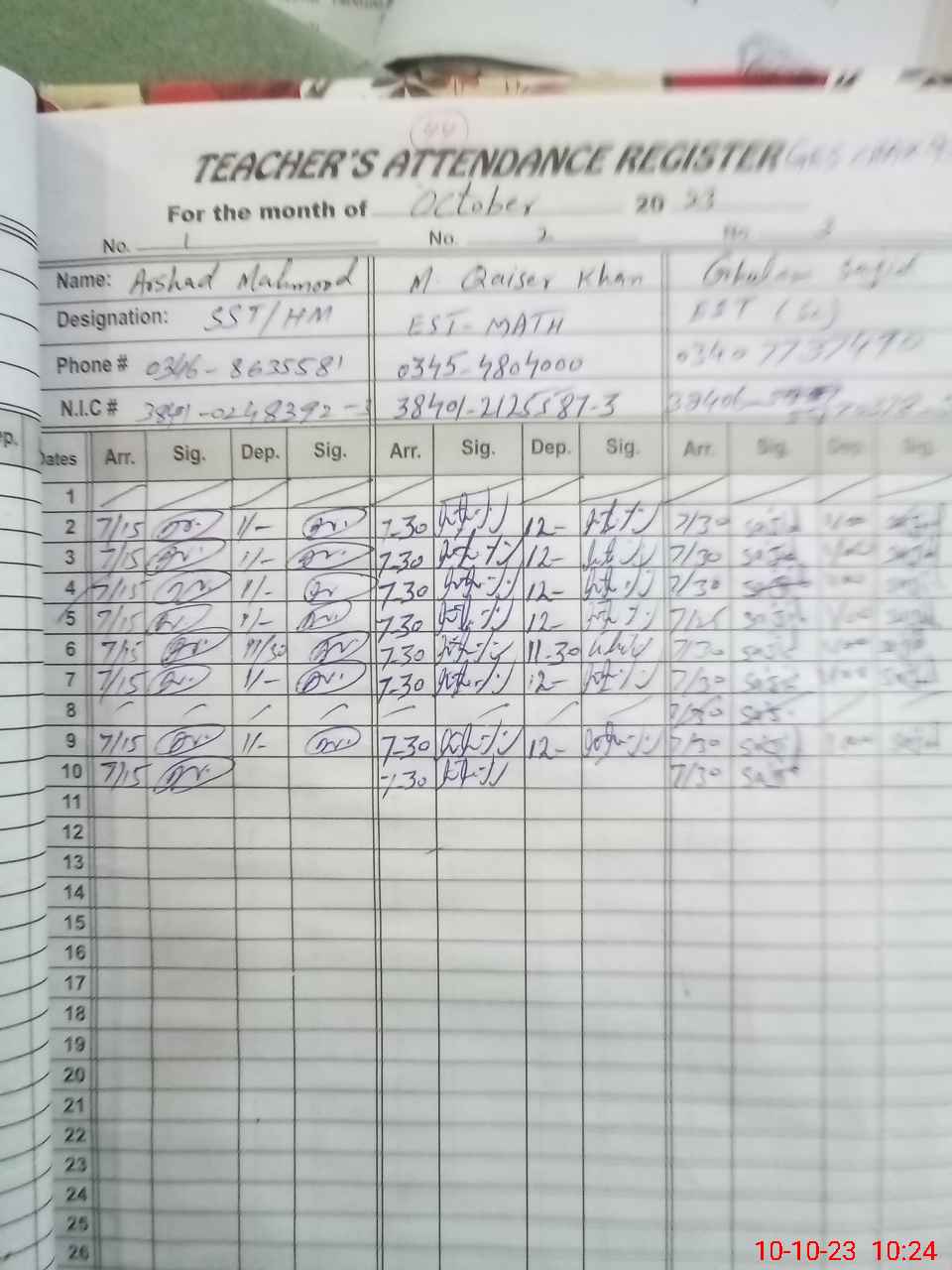 | CNIC | Full Name | Designation | R/C | Absence during last cal. month |