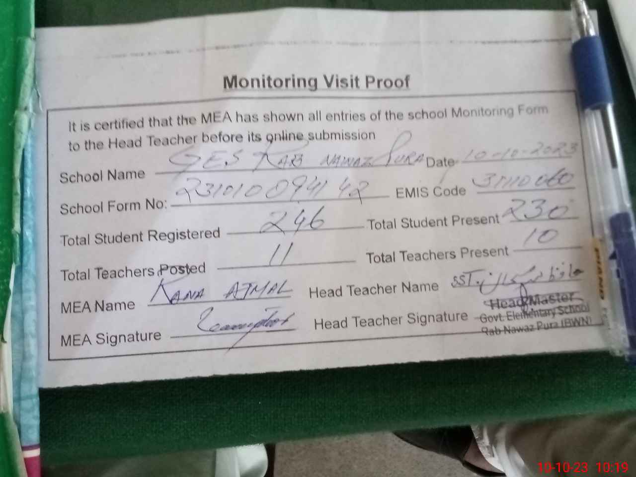 | EMIS Code: 31110060 | Name of School: GES RAB NAWAZ PURA | |||