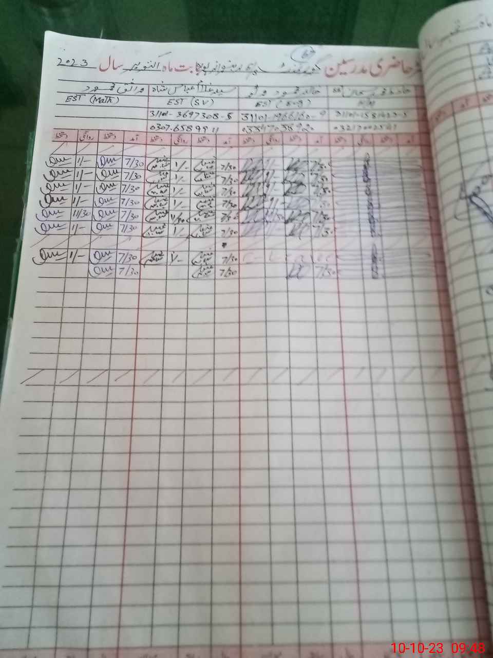 | Name: MHa**** Ba**** Designation: (School Headmaster's/Headmistress's) E S T Phone/Cell Number: 03**** |