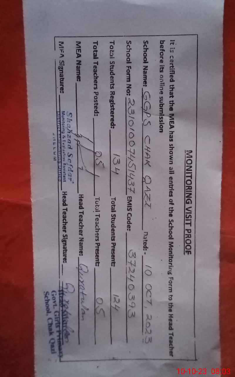| EMIS Code: 37240393 | Name of School: GGPS CHAK QAZI | |||