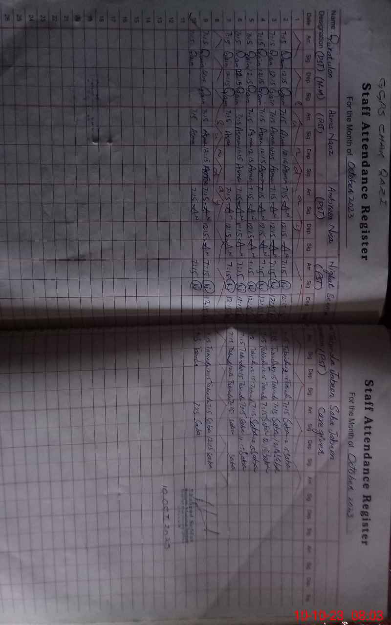 | CNIC | Full Name | Designation | R/C | Absence During Last Calender Month |