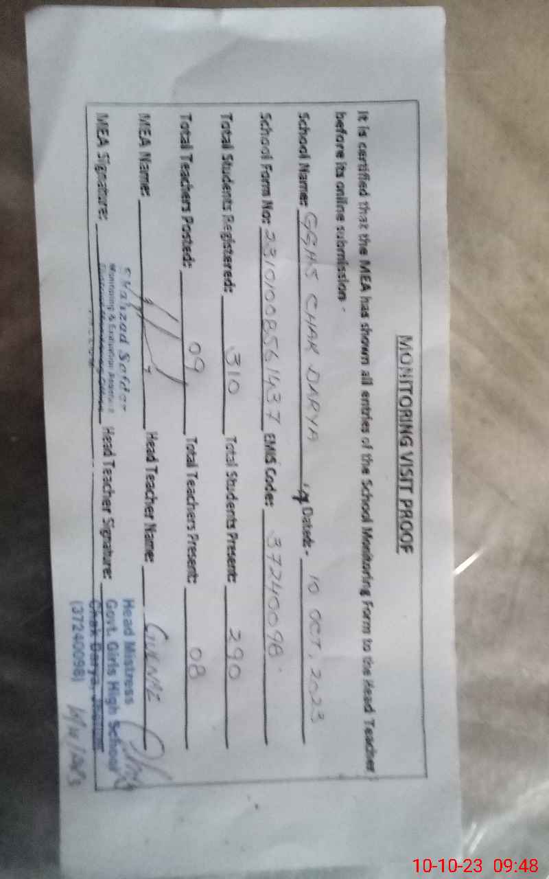 | EMIS Code: 37240098 | Name of School: GGHS CHAK DARYA | |||