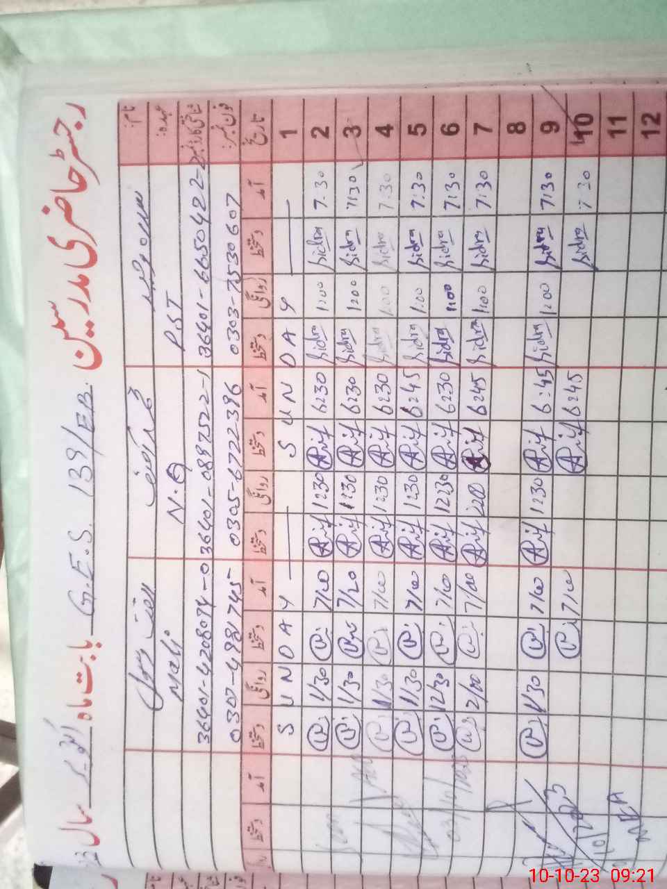 | Name: RA**** NA**** AH**** AF**** Designation: (School Headmaster's/Headmistress's) SST (SCIENCE) Phone/Cell Number: 03**** |
