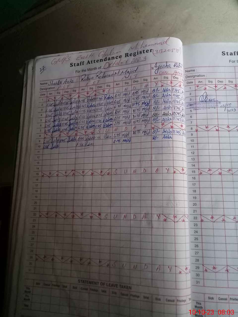 | Name: Sh**** Az**** Designation: (School Headmaster's/Headmistress's) PST Phone/Cell Number: 03**** |