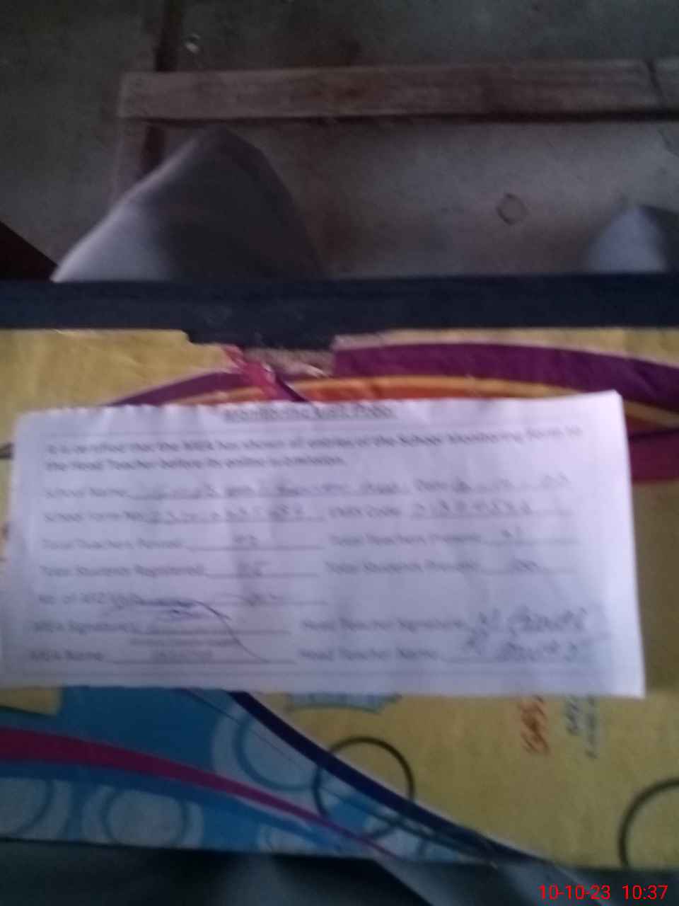 | Monitoring Date: 10-10-2023 | Start Time: 10-10-2023 10:06 AM | End Time: 10-10-2023 10:38 AM | Name of MEA: Mu**** Sa**** Ul**** Sa**** | |