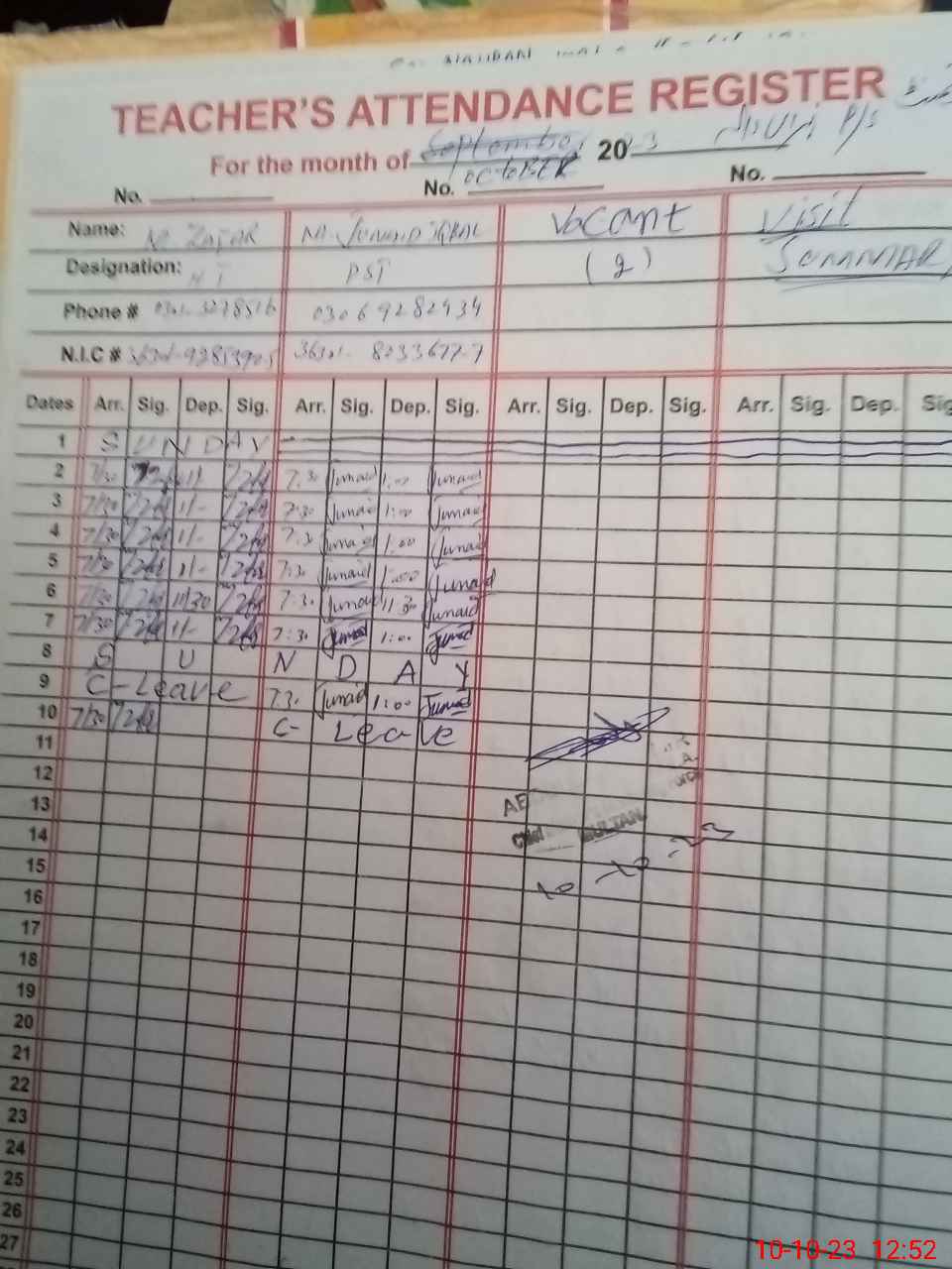 | Name: Ab**** Ra**** Designation: (School Headmaster's/Headmistress's) PSSP Phone/Cell Number: 03**** |
