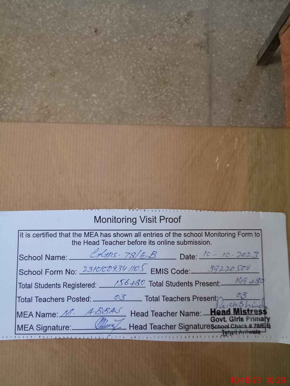 | EMIS Code: 39220500 | Name of School: GGES CHAK NO.78 EB | |||
