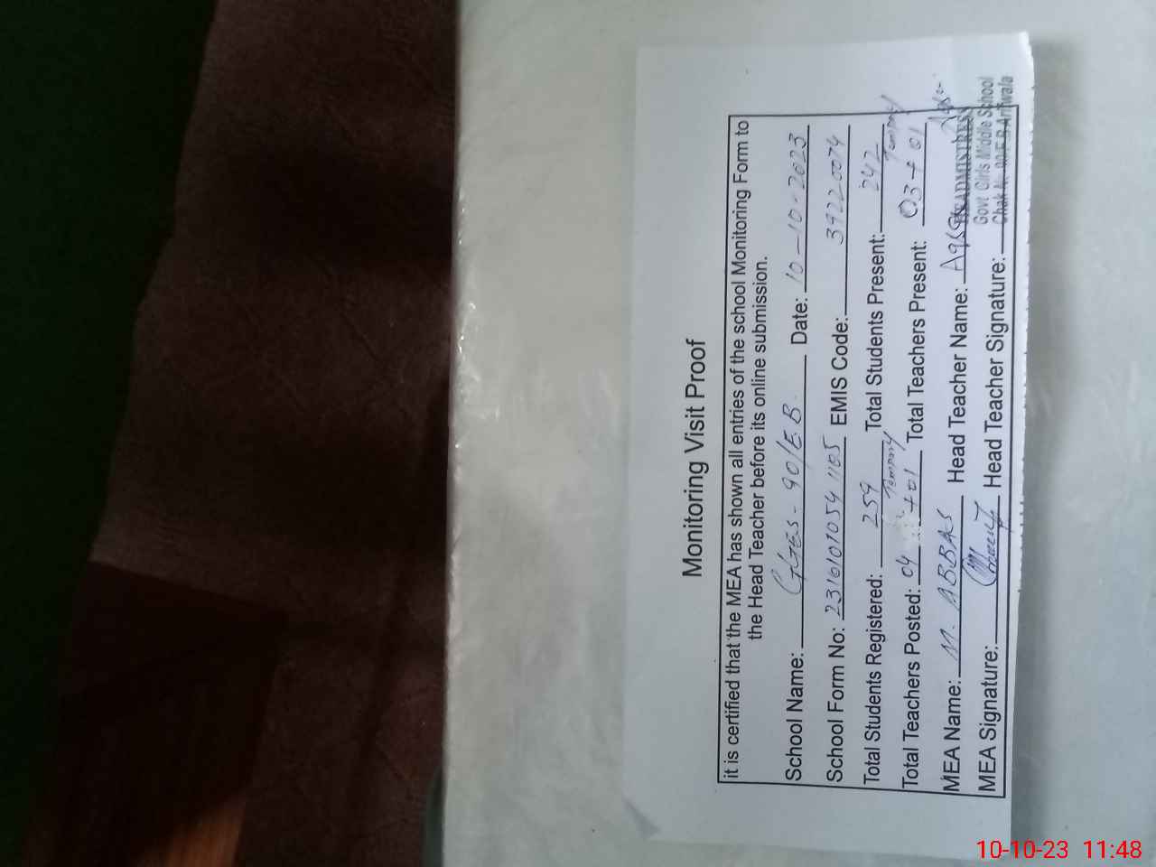 | Certified that this School was Inspected by the Undersigned MEA/DMO Today and the Information Stated Above is as Per Record. | |||||