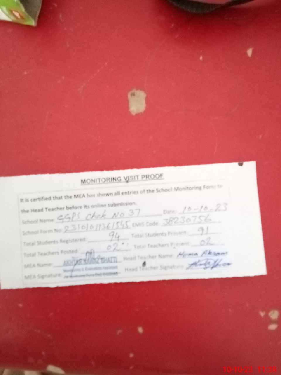 | EMIS Code: 38230756 | Name of School: GGPS CHAK NO 27 MB | |||