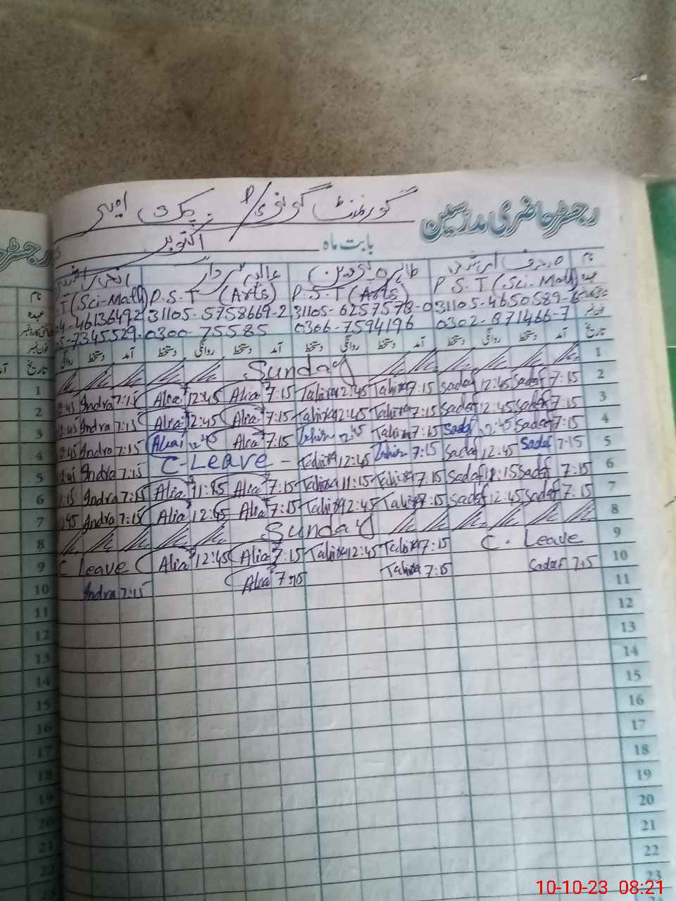 | Name: SA**** AR**** Designation: (School Headmaster's/Headmistress's) PST Phone/Cell Number: 03**** |