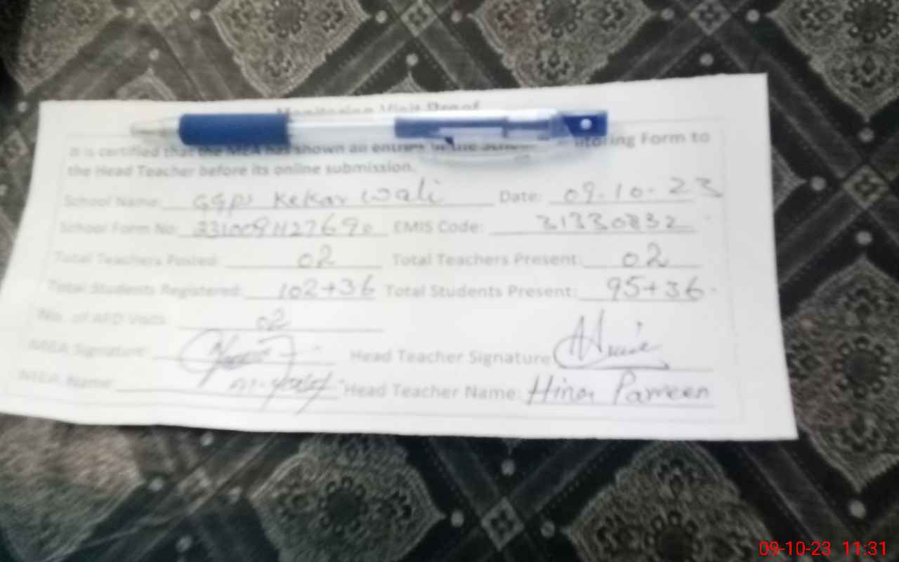 | EMIS Code: 31330832 | Name of School: GGPS KEKAR WALI | |||
