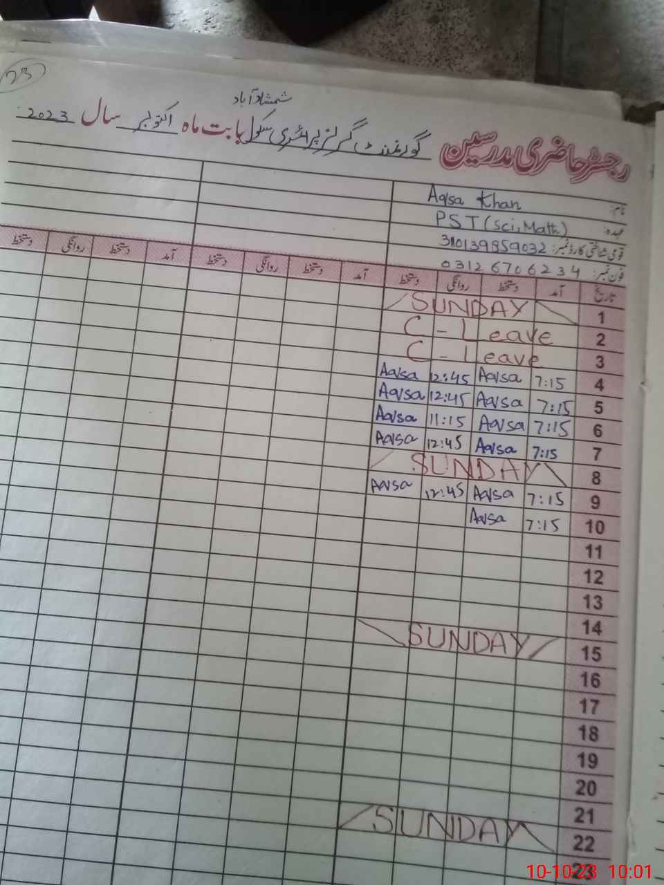 | Name: Ma**** Ar**** Designation: (School Headmaster's/Headmistress's) PST Phone/Cell Number: 03**** |