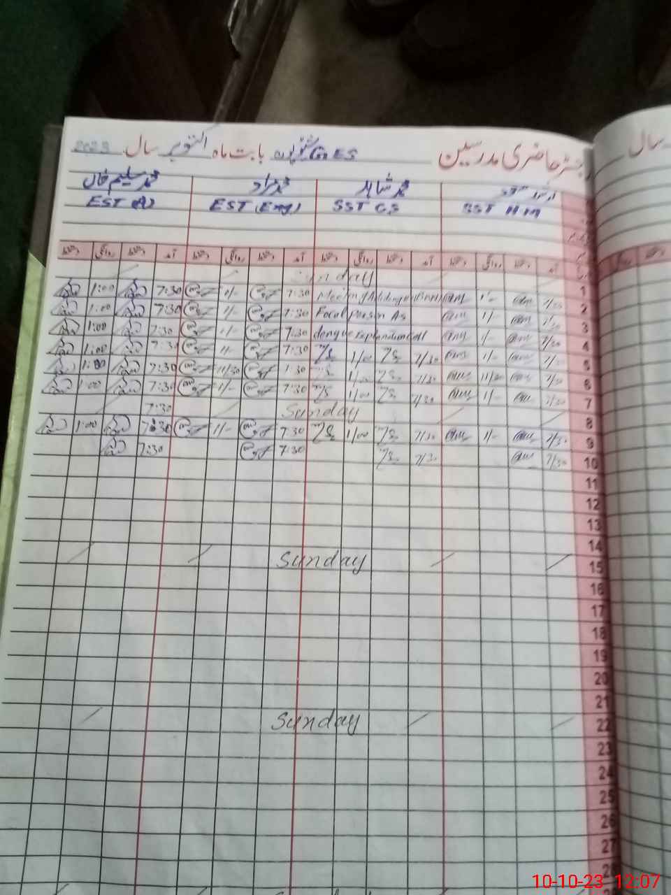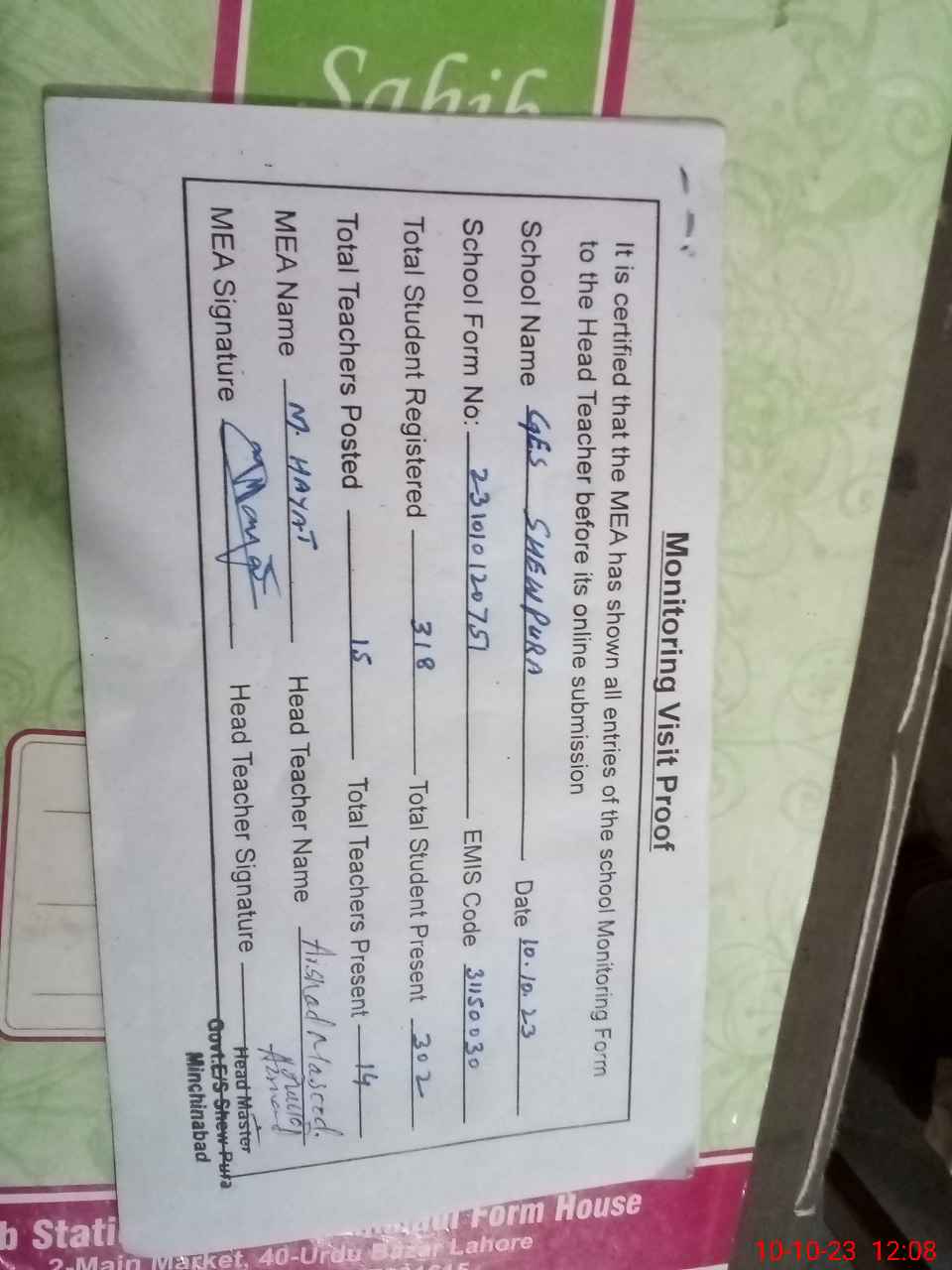 | Attendance Register | Head Teacher | MEA with School | Visit Proof |