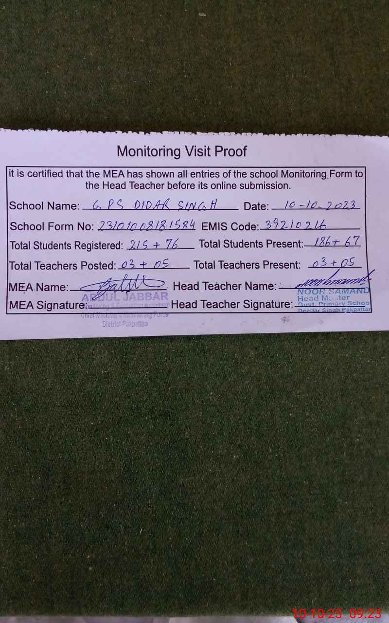 | EMIS Code: 39210216 | Name of School: GPS DIDAR SINGH | |||