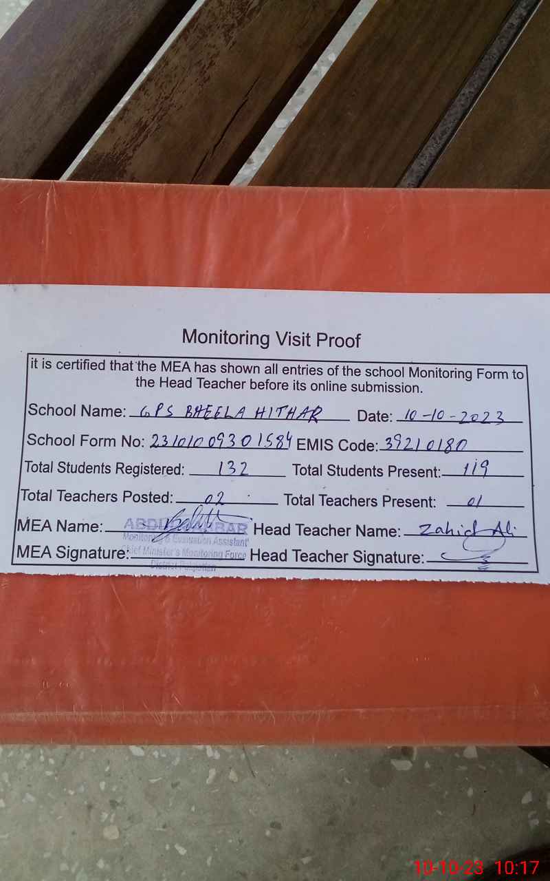 | EMIS Code: 39210180 | Name of School: GPS BHEELA HITHAR | |||