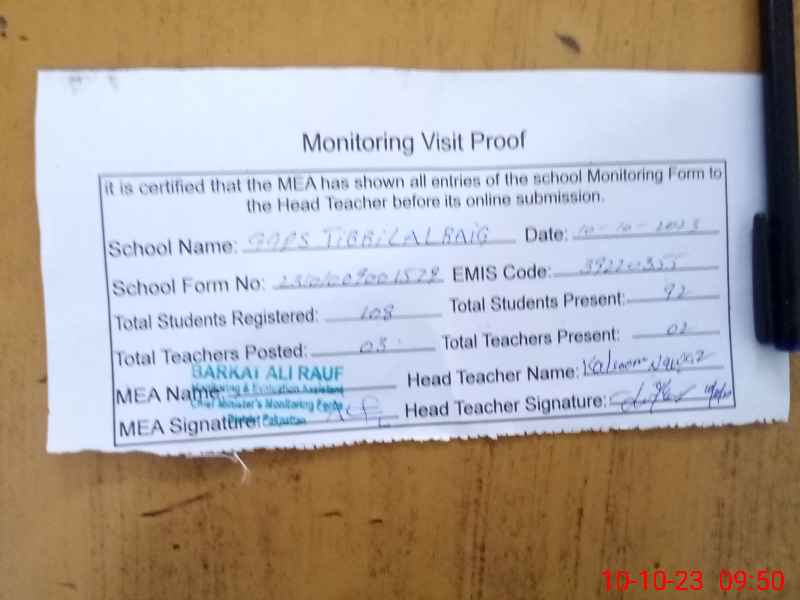 | EMIS Code: 39220355 | Name of School: GGPS TIBBI LAL BAIG | |||