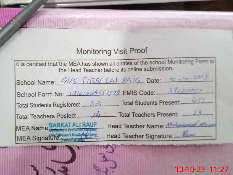 | EMIS Code: 39220017 | Name of School: GHS TIBBI LAL BAIG | |||