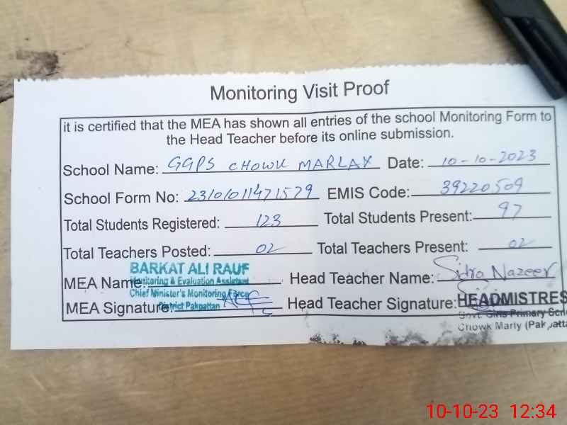 | EMIS Code: 39220509 | Name of School: GGPS CHOWK MARLAY | |||