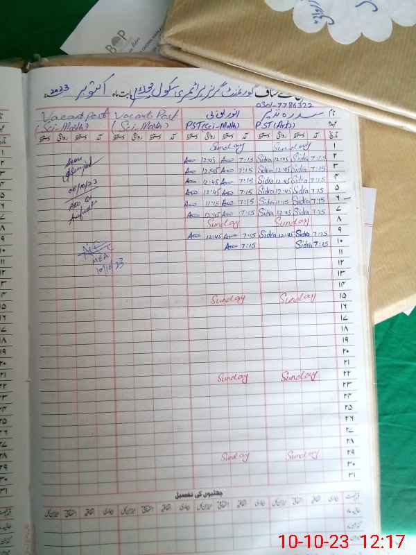 | Name: SI**** NA**** Designation: (School Headmaster's/Headmistress's) PST Phone/Cell Number: 03**** |