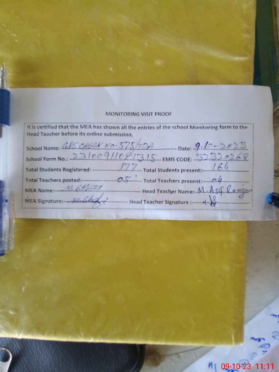 | EMIS Code: 32320268 | Name of School: GPS CHAK NO.575 TDA | |||