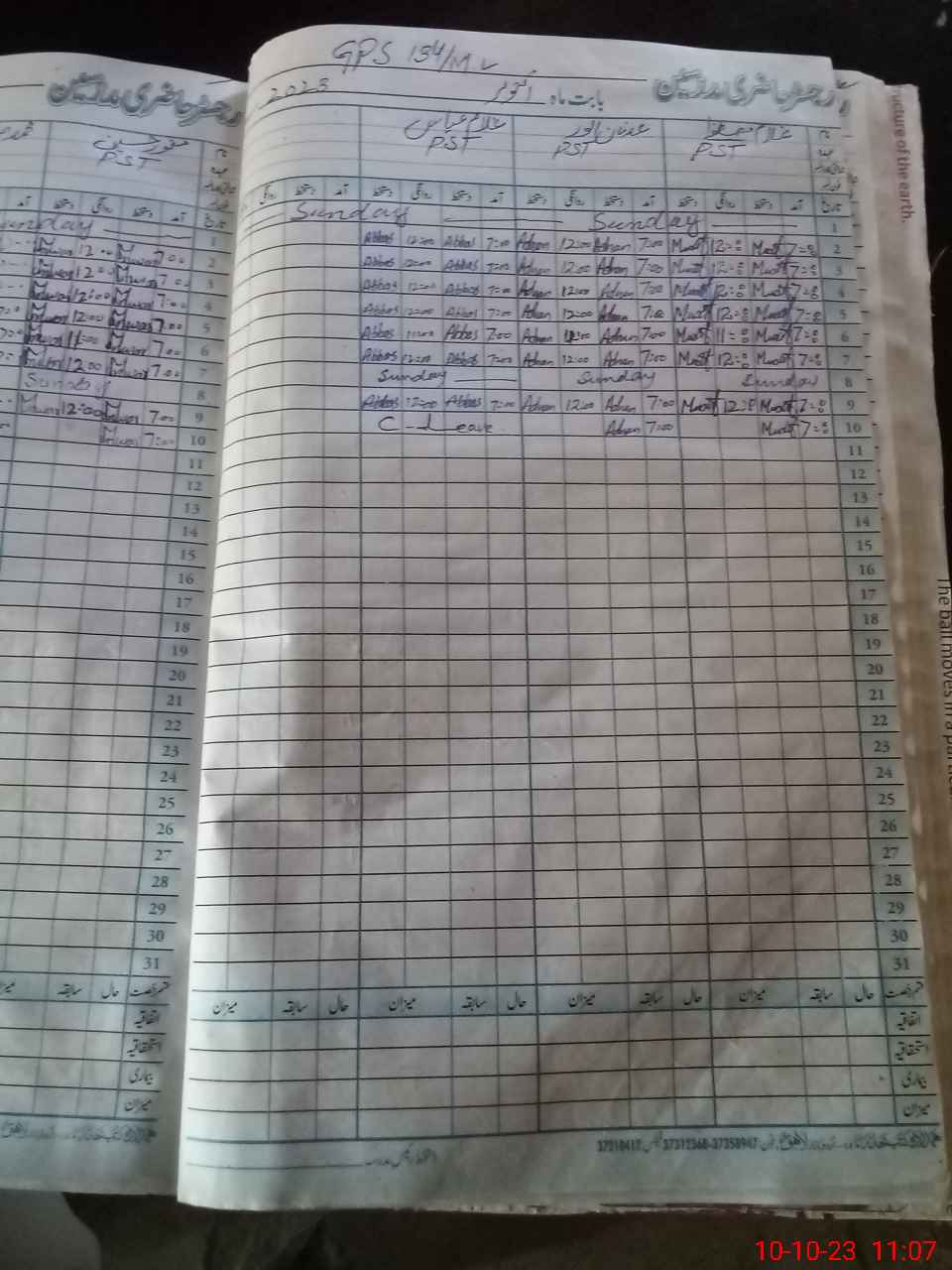 | CNIC | Full Name | Designation | R/C | Absence During Last Calender Month |