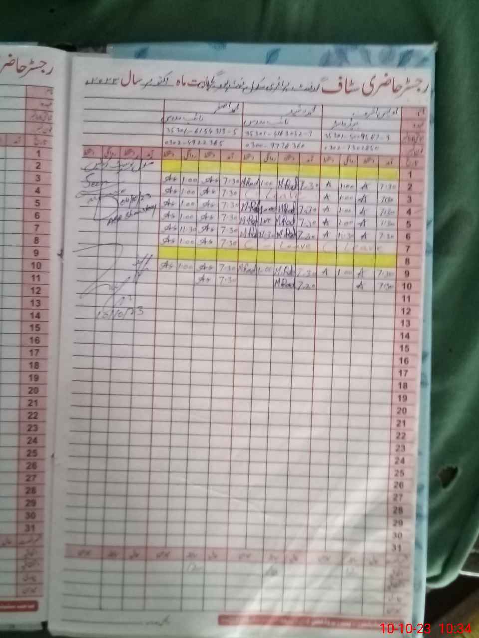 | CNIC | Full Name | Designation | R/C | Absence During Last Calender Month |