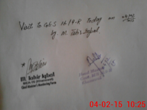 | Monitoring Date: 04-02-2015 | Start Time: 04-02-2015 09:47 AM | End Time: 04-02-2015 10:53 AM | Name of MEA: M.Ta**** Iq**** (S**** | |