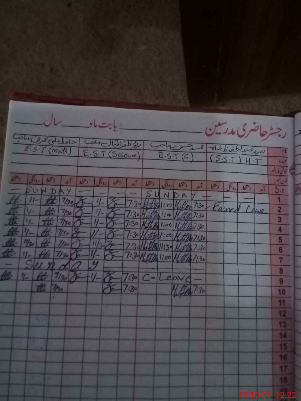 | CNIC | Full Name | Designation | R/C | Absence During Last Calender Month |