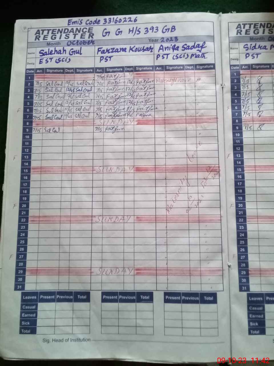 | 33**** | An**** Sa**** | 1 | 3 | 0 | 0 | 0 | 0 | 0 | 0 | 0 | 3 | Maternity | |