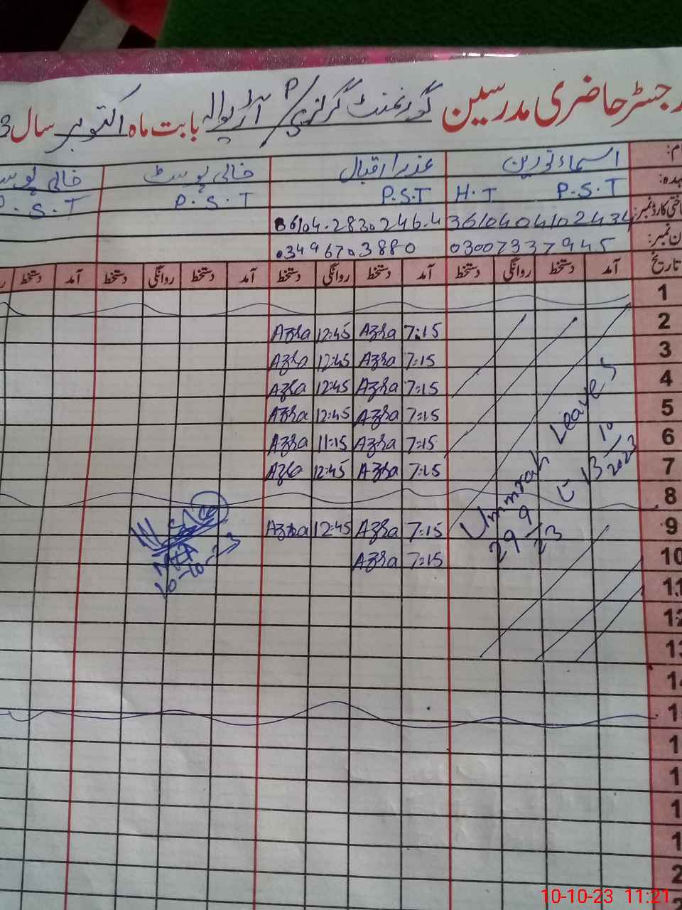 | Name: As**** No**** Designation: (School Headmaster's/Headmistress's) PST Phone/Cell Number: 03**** |