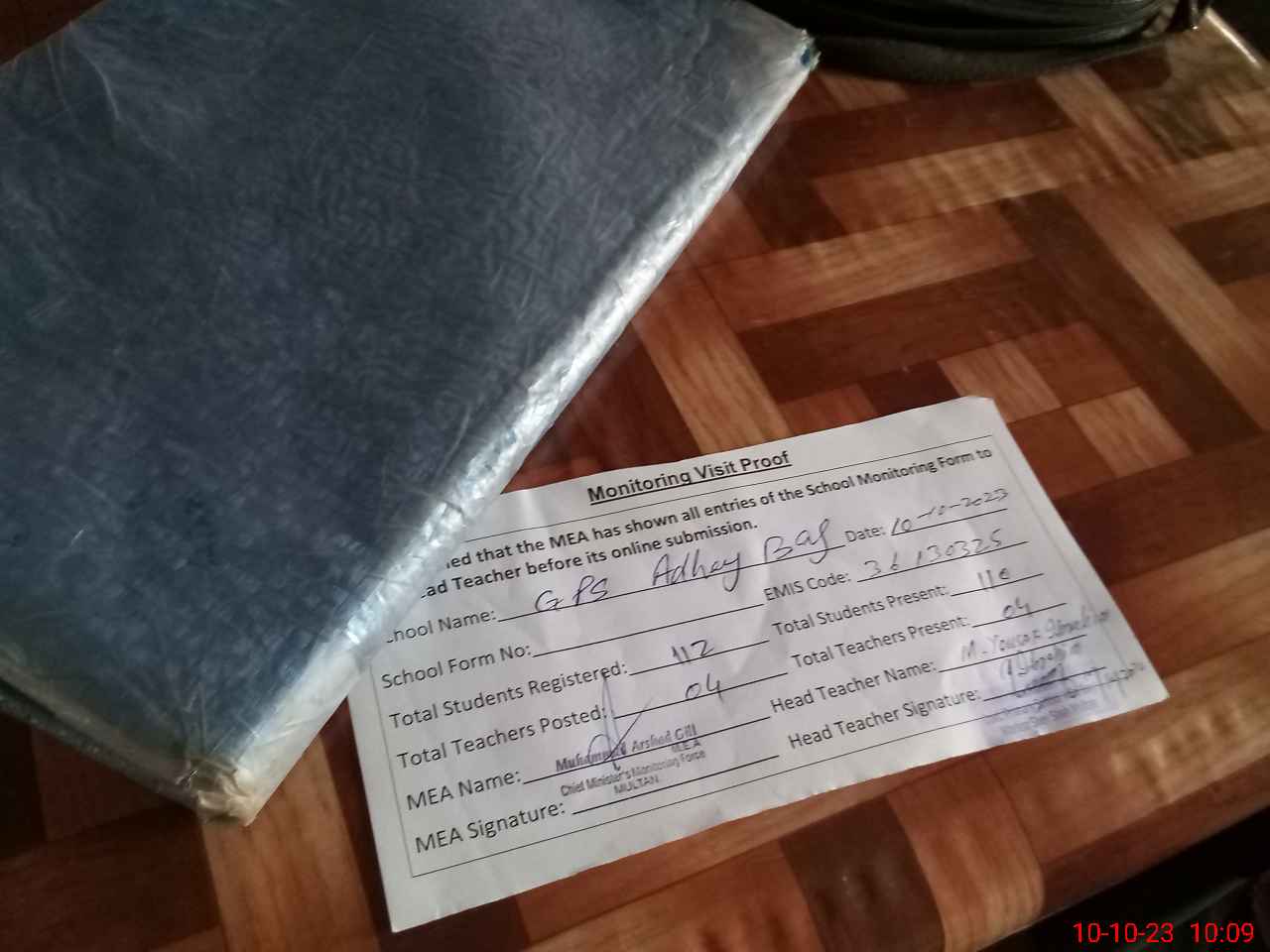 | Attendance Register | Head Teacher | MEA with School | Visit Proof |