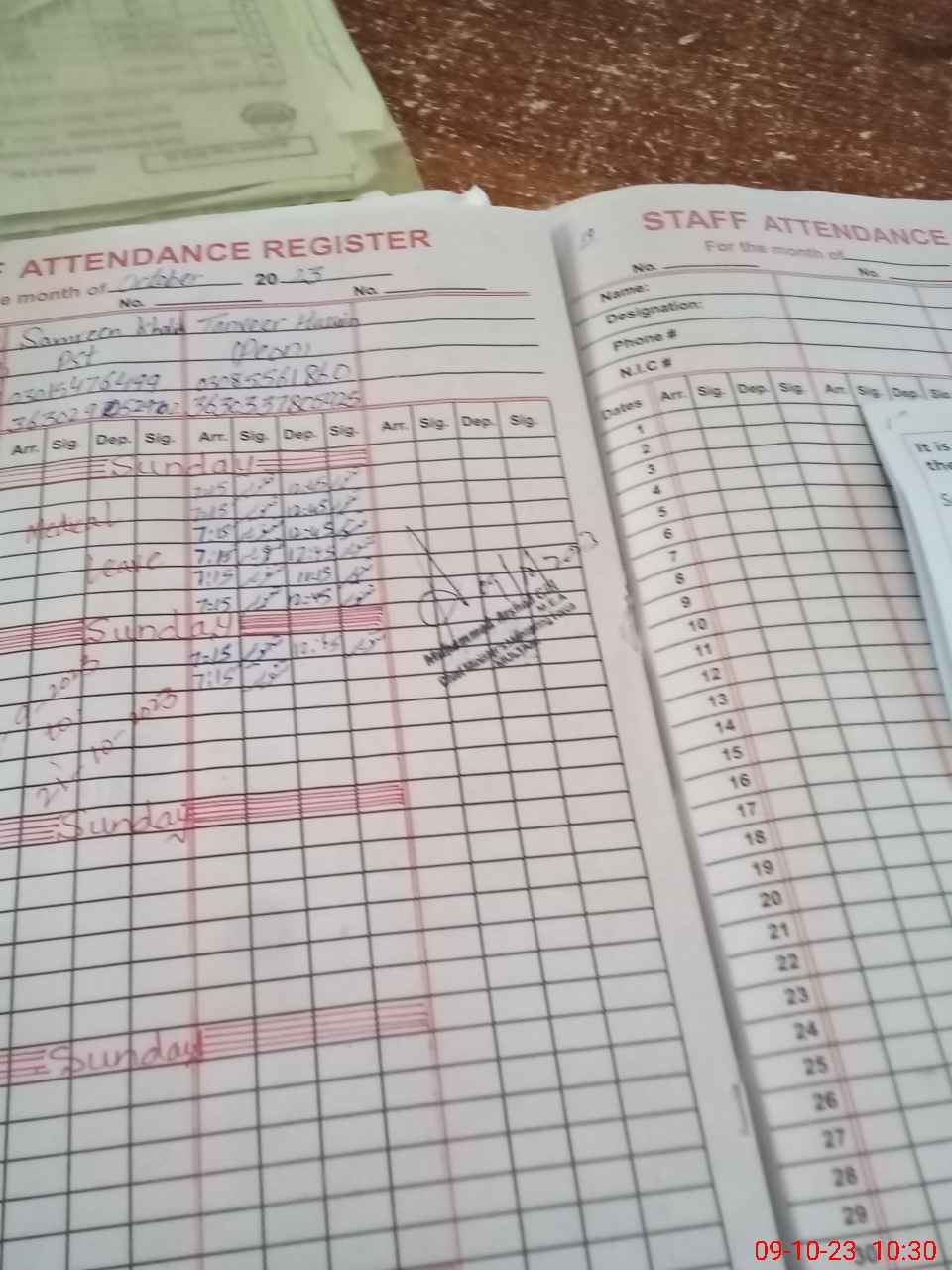 | CNIC | Full Name | Designation | R/C | Absence During Last Calender Month |