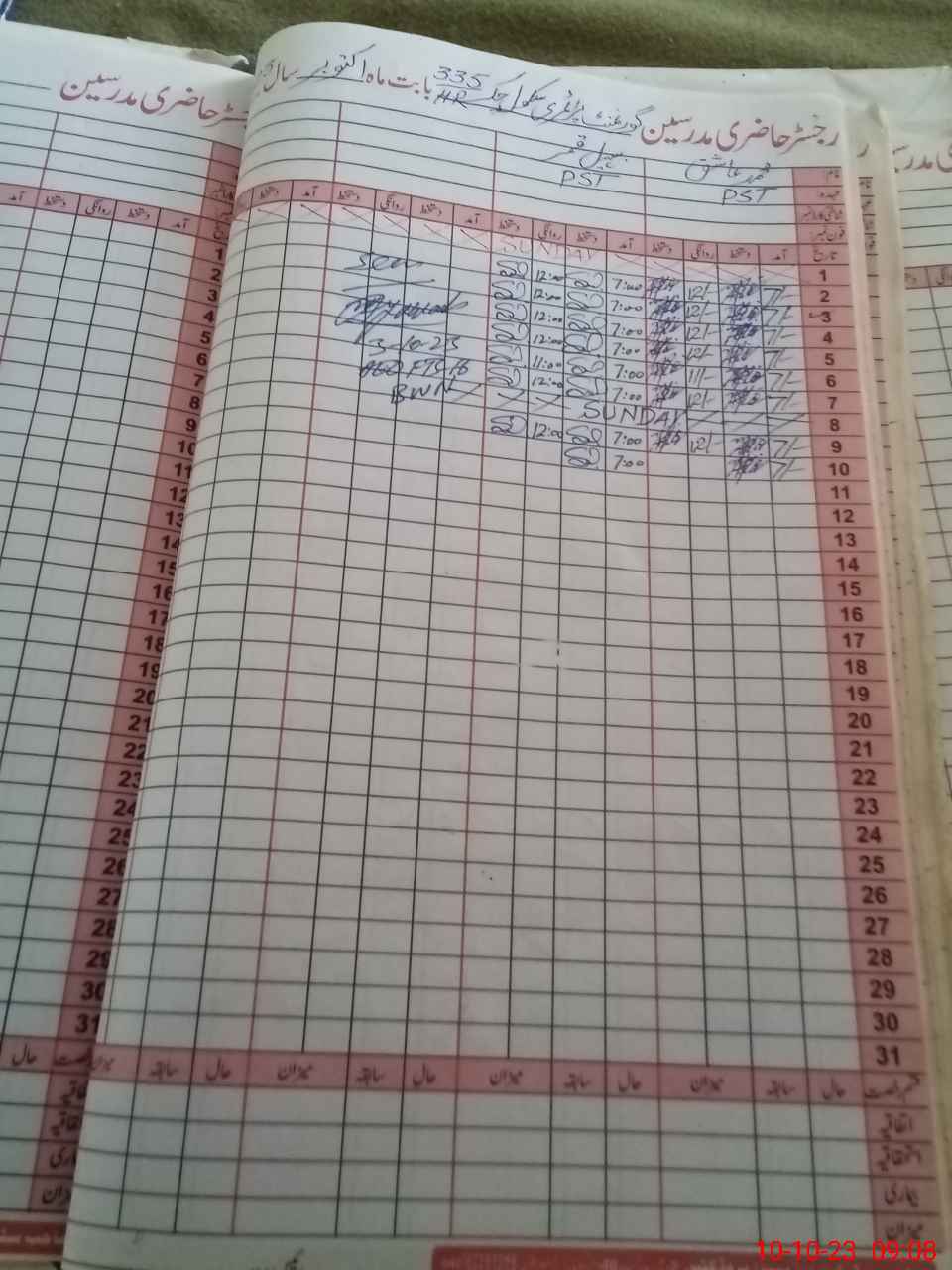 | CNIC | Full Name | Designation | R/C | Absence During Last Calender Month |
