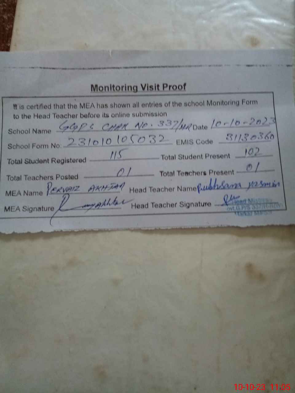 | EMIS Code: 31130360 | Name of School: GGPS CHAK NO 337 HR W | |||