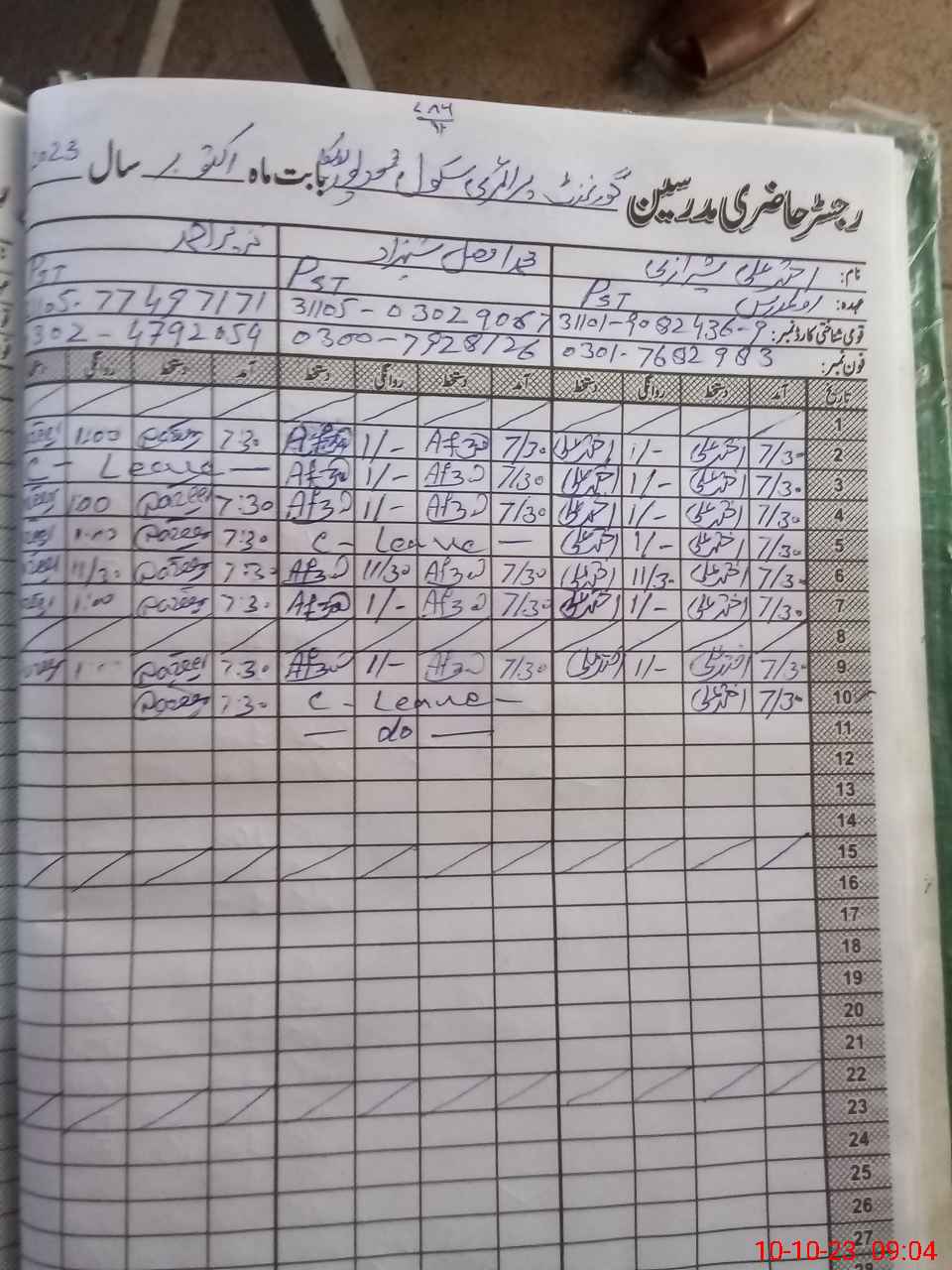 | Name: AK**** AL**** Designation: (School Headmaster's/Headmistress's) PST Phone/Cell Number: 03**** |