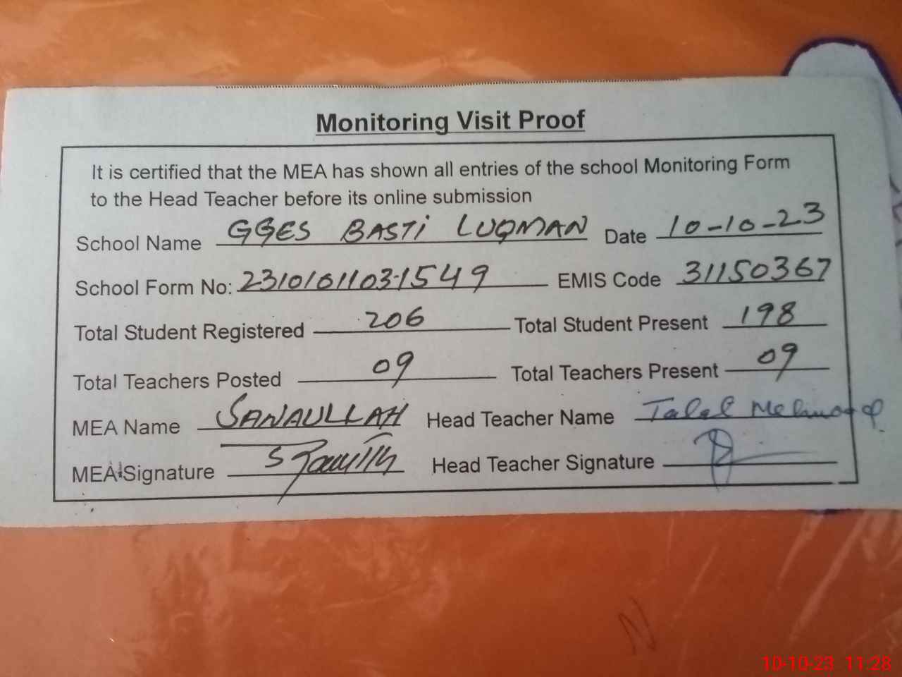 | EMIS Code: 31150367 | Name of School: GGES BASTI LUQMAN | |||