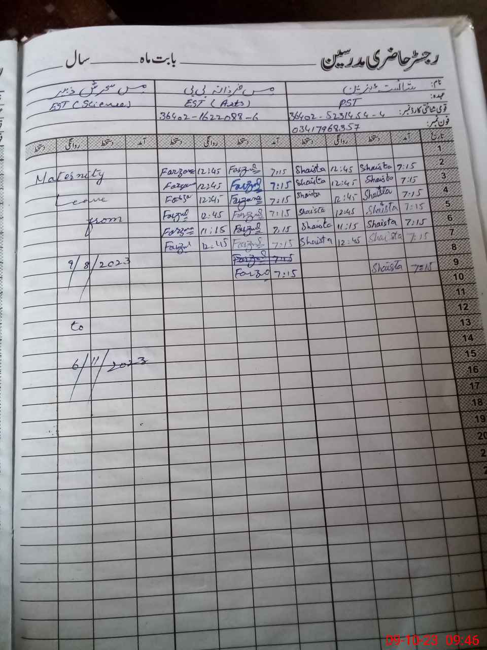| Name: Se**** Zu**** Designation: (School Headmaster's/Headmistress's) EST Phone/Cell Number: 03**** |