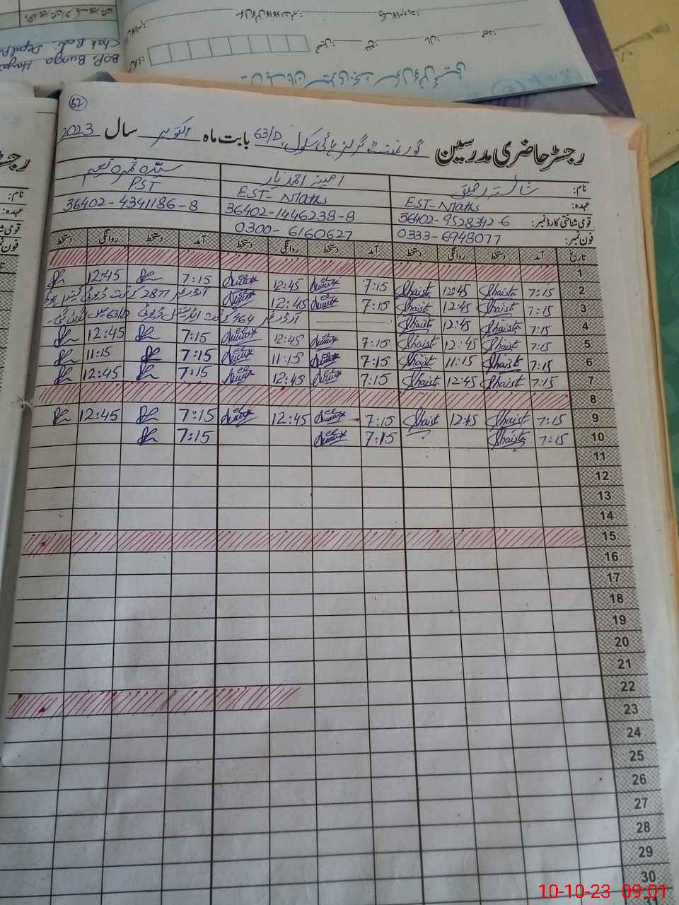 | Name: Me**** UNi**** Designation: (School Headmaster's/Headmistress's) SST Science Phone/Cell Number: 03**** |