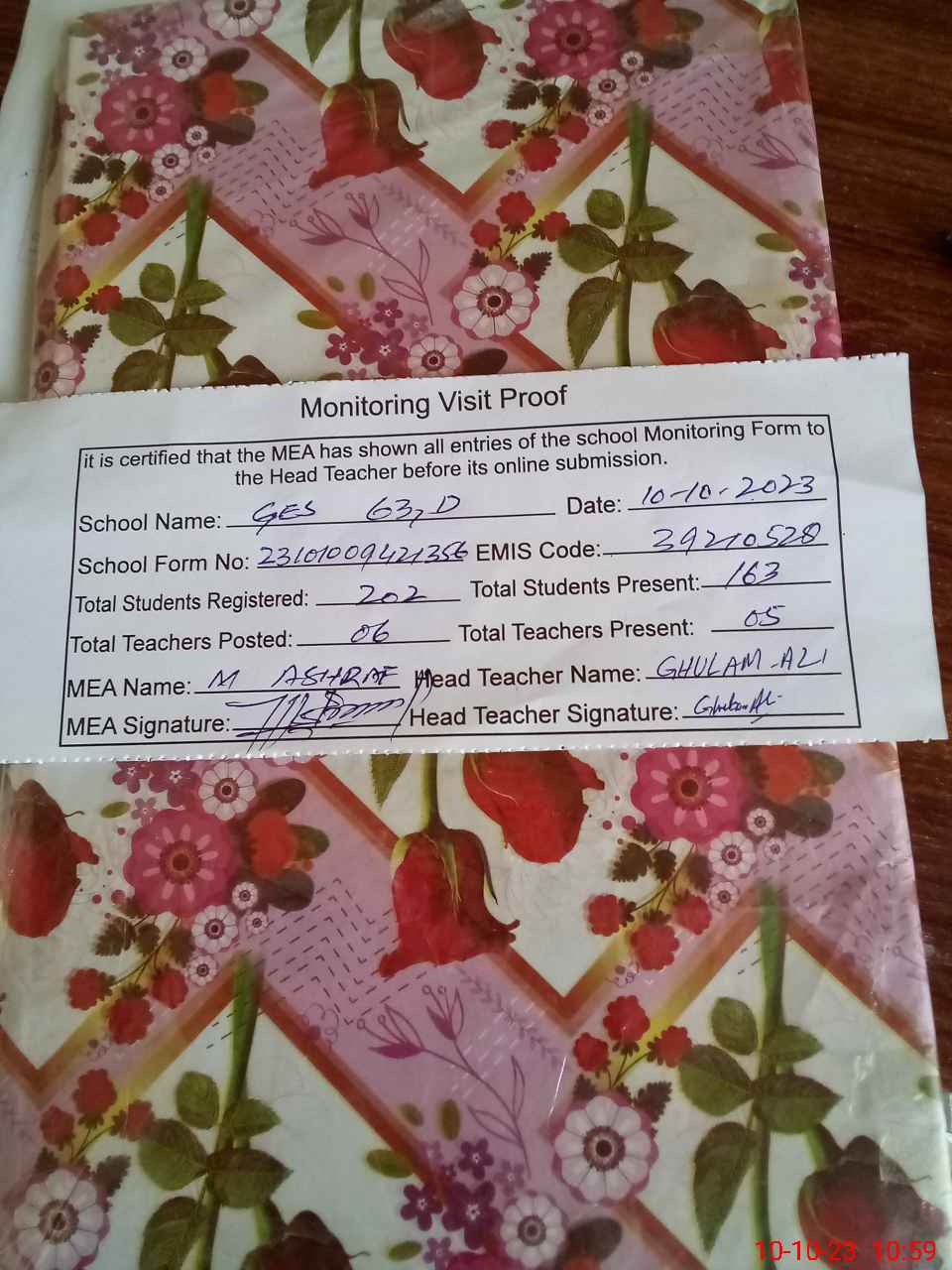 | EMIS Code: 39210528 | Name of School: GES CHAK NO. 63 D | |||