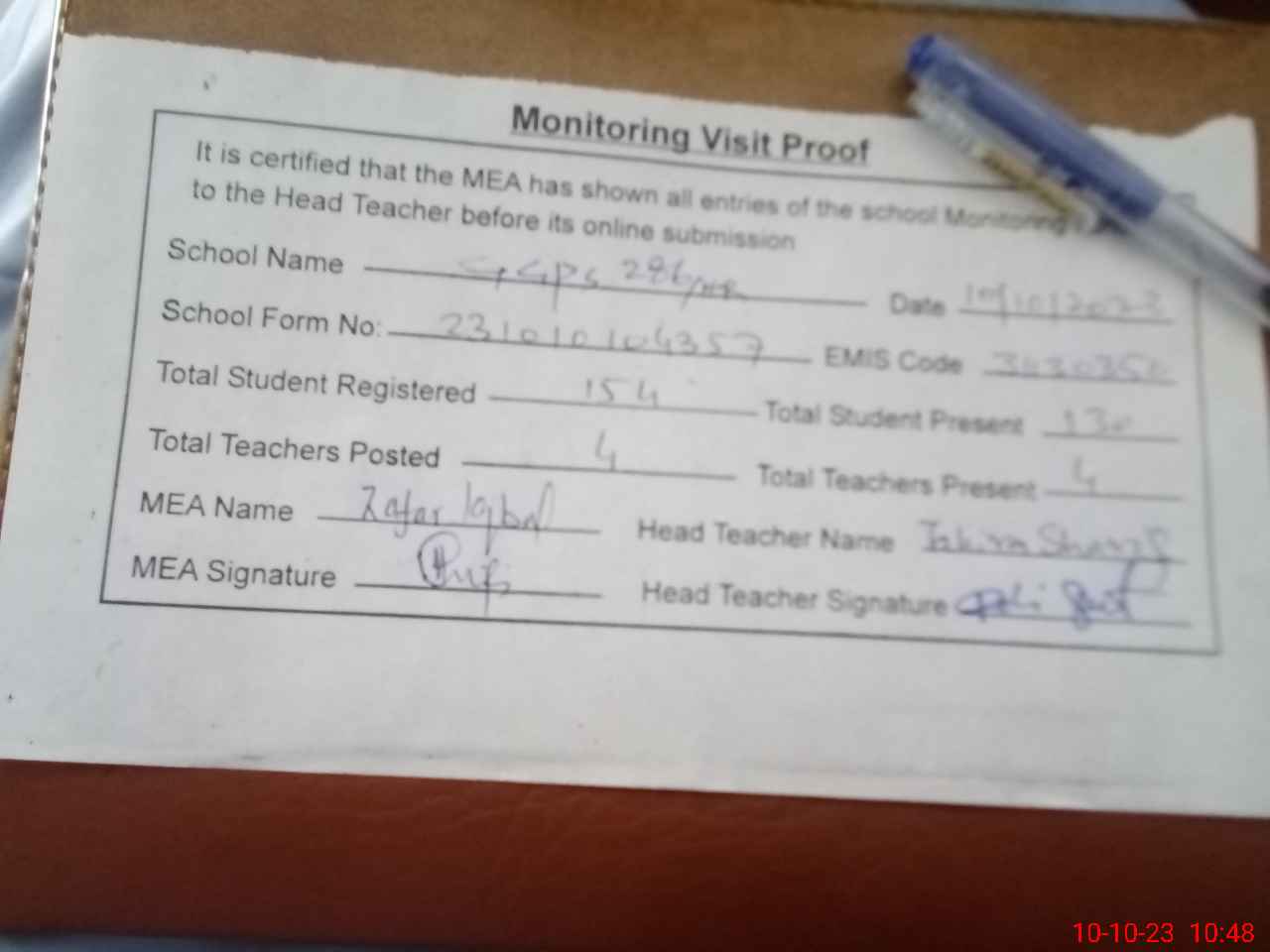| Monitoring Date: 10-10-2023 | Start Time: 10-10-2023 10:30 AM | End Time: 10-10-2023 10:48 AM | Name of MEA: Za**** Iq**** BN**** | |