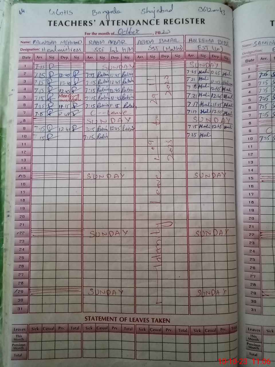 | 36**** | Ab**** Is**** | 5 | 1 | 0 | 0 | 0 | 0 | 0 | 0 | 0 | 0 | 0 | Maternity |