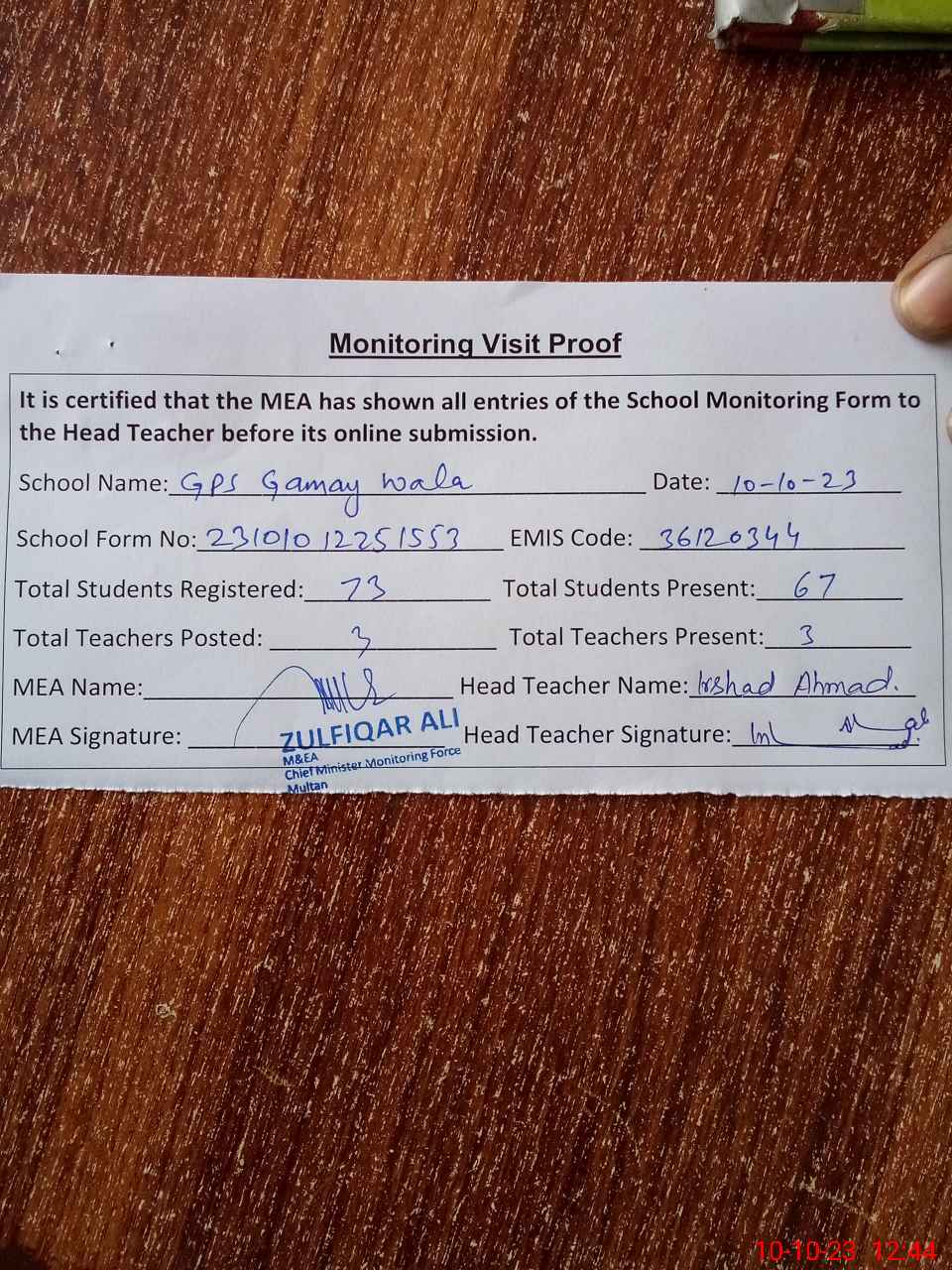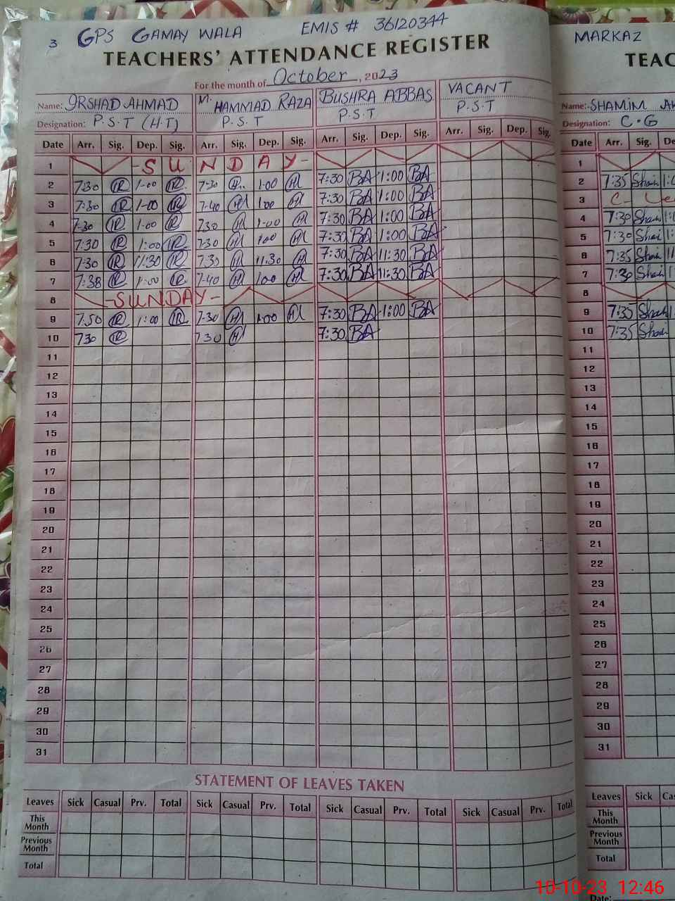 | EMIS Code: 36120344 | Name of School: GPS GAMAY WALA ADDA PIR GHAIB P/O NASEERPUR | |||