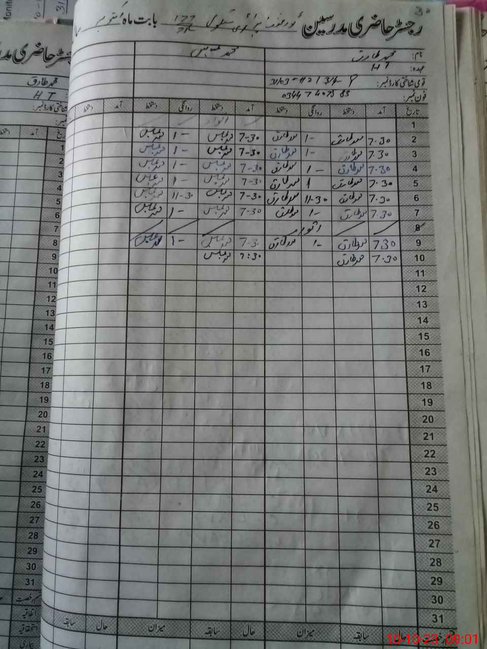 | Name: MU**** TA**** Designation: (School Headmaster's/Headmistress's) PTC Phone/Cell Number: 03**** |