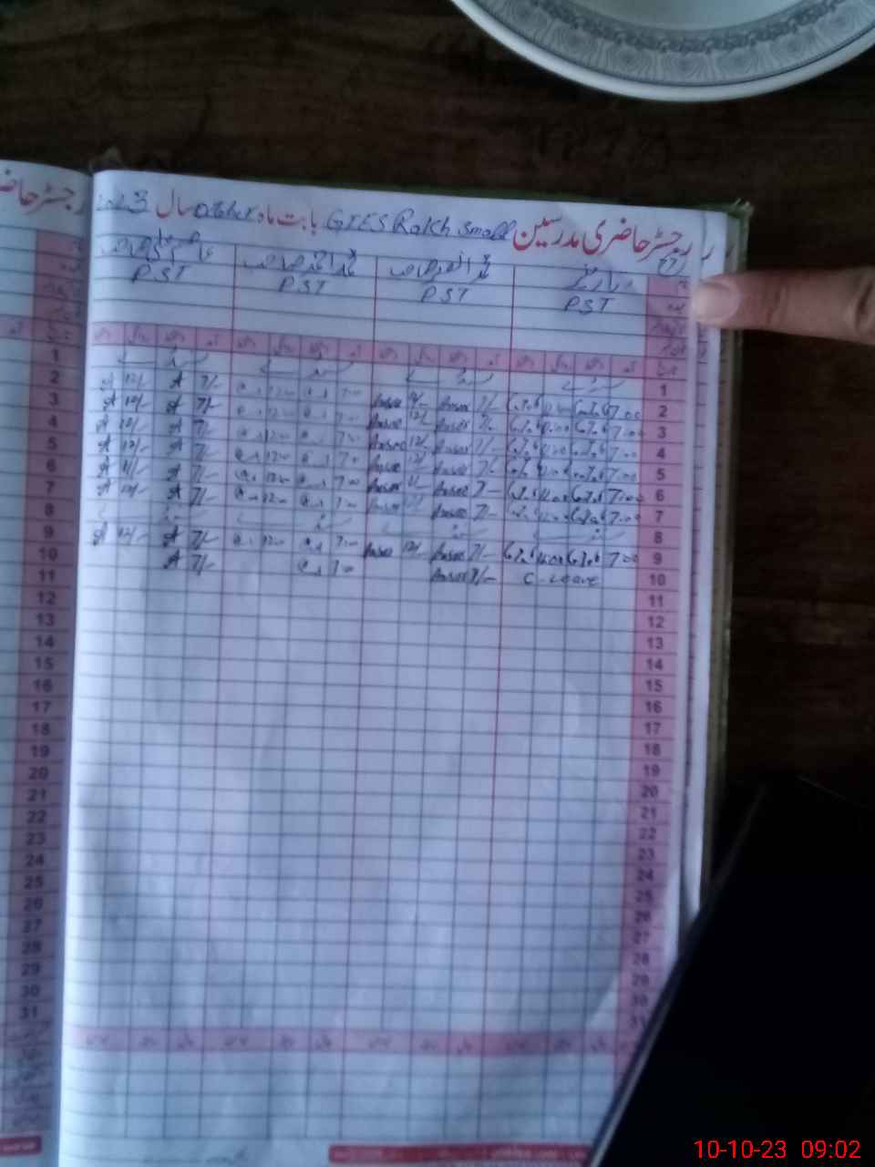 | CNIC | Full Name | Designation | R/C | Absence During Last Calender Month |
