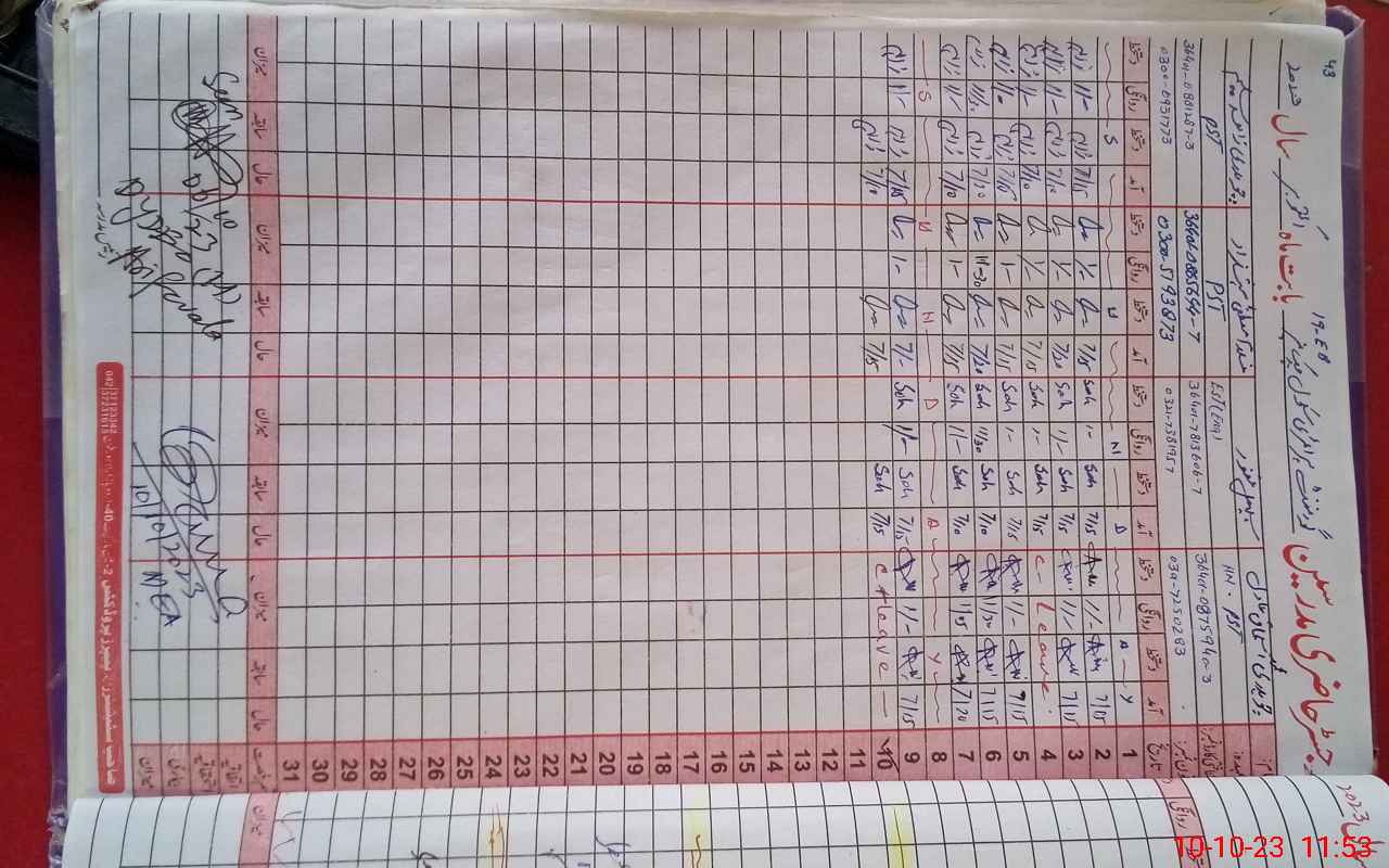 | CNIC | Full Name | Designation | R/C | Absence During Last Calender Month |