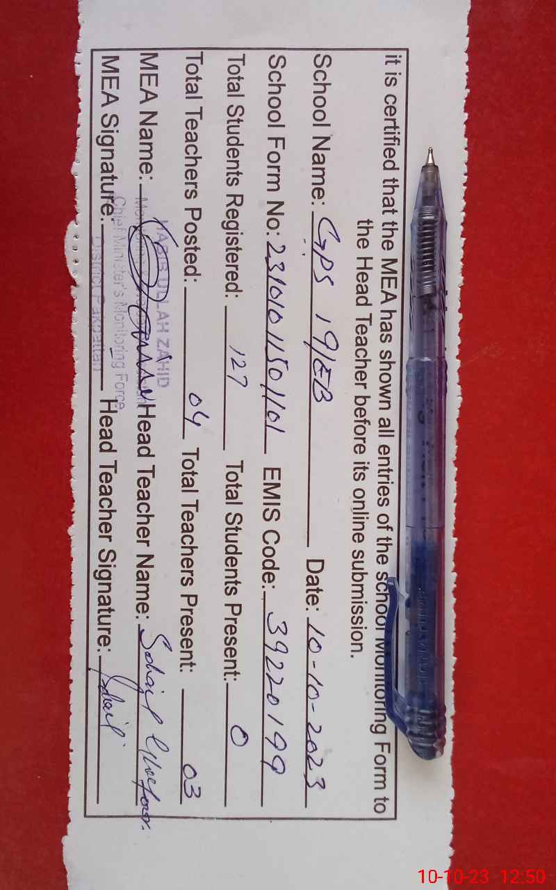 | EMIS Code: 39220199 | Name of School: GPS 19 EB HUSSAIN PUR | |||
