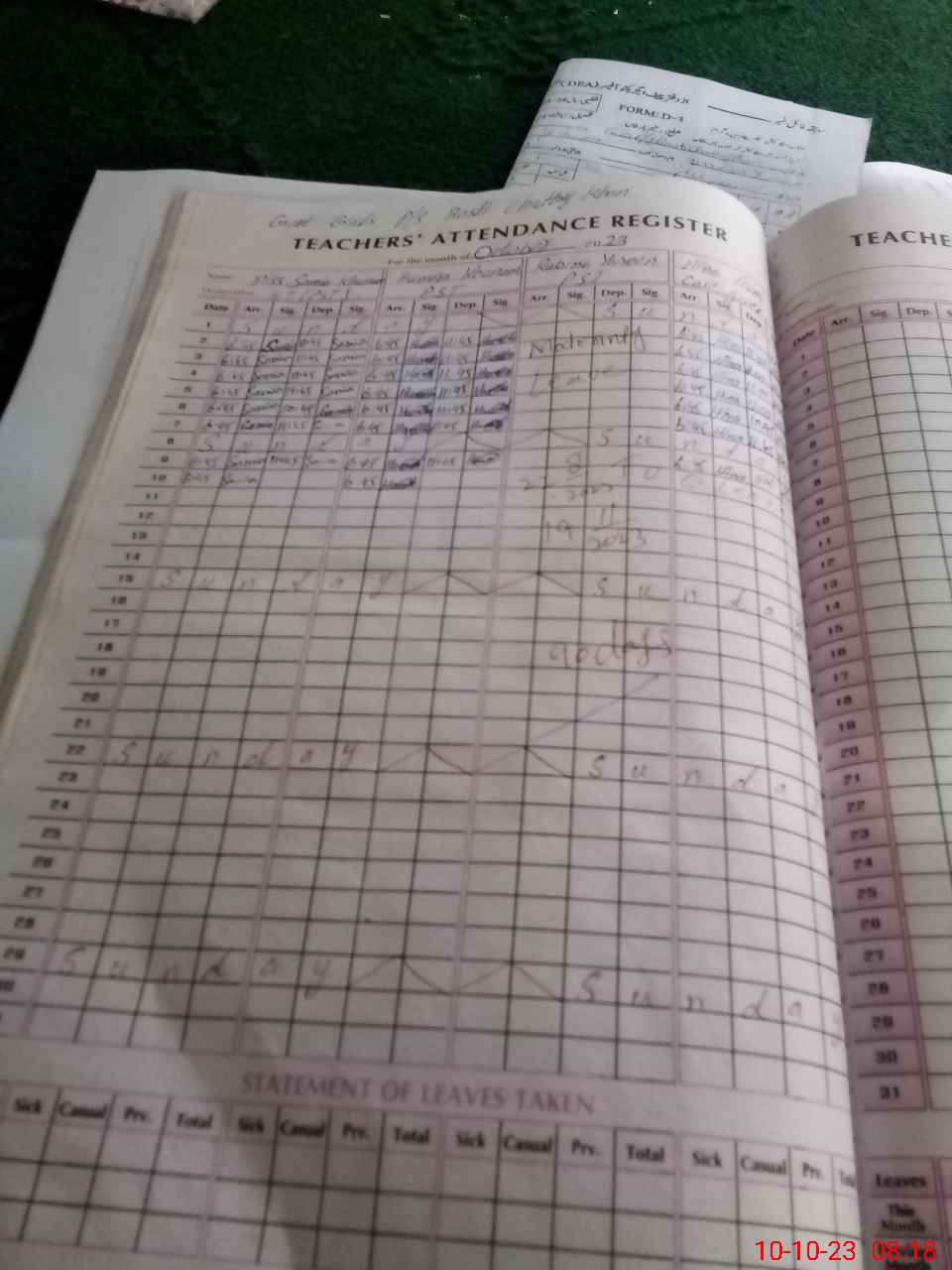 | 31**** | Ru**** Ya**** | 2 | 2 | 0 | 0 | 0 | 0 | 0 | 0 | 0 | 0 | 0 | Maternity |
