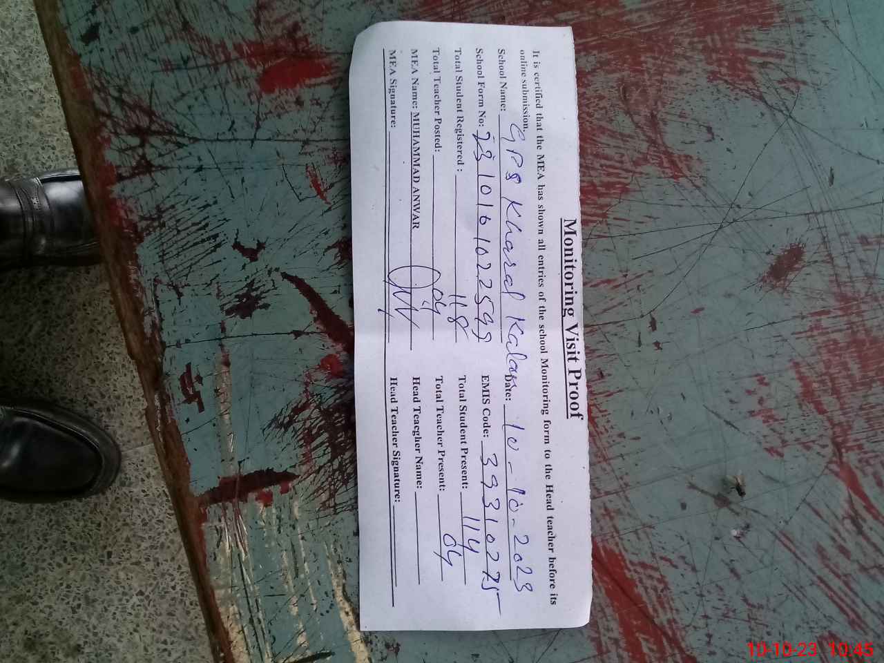 | Certified that this School was Inspected by the Undersigned MEA/DMO Today and the Information Stated Above is as Per Record. | |||||